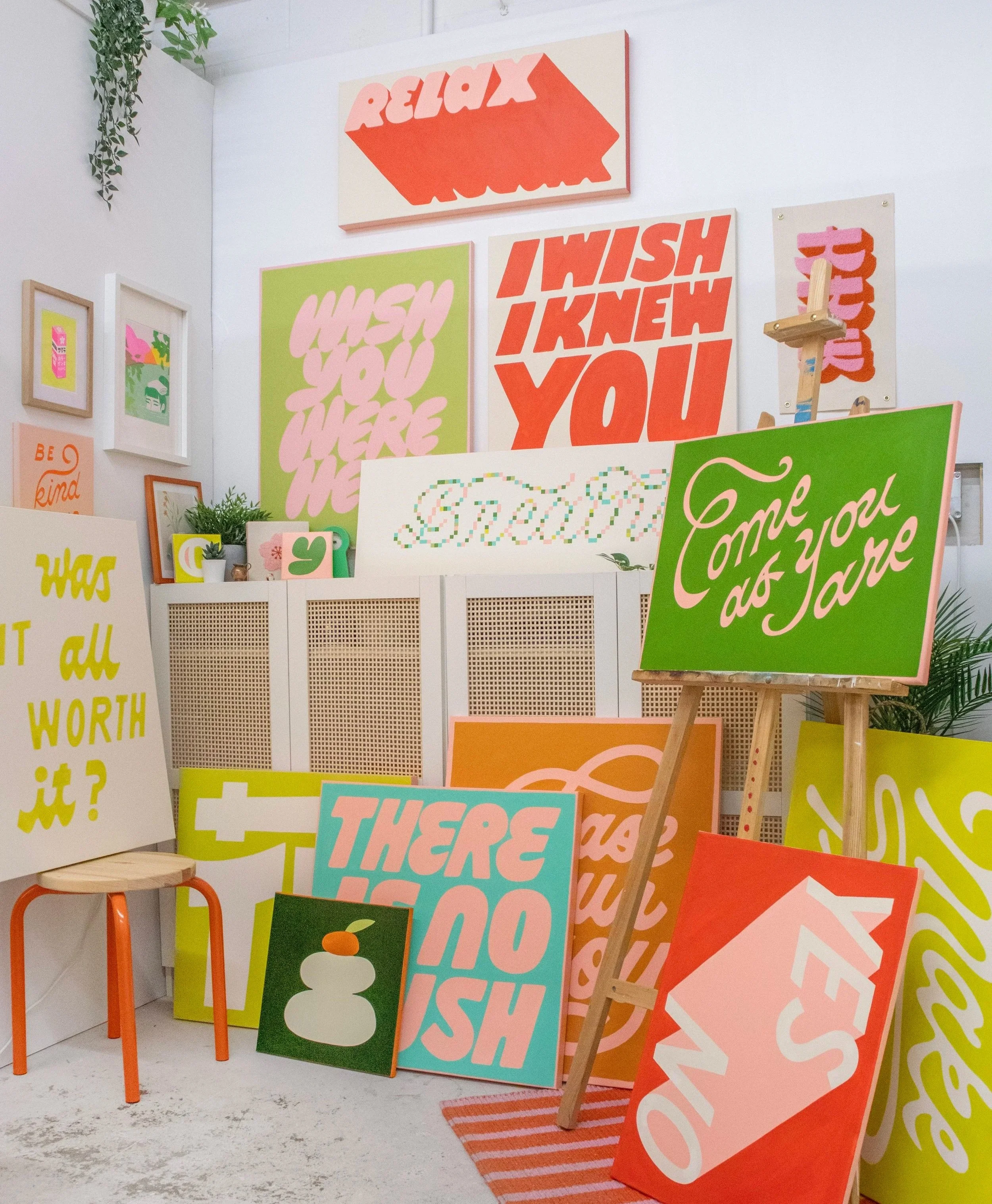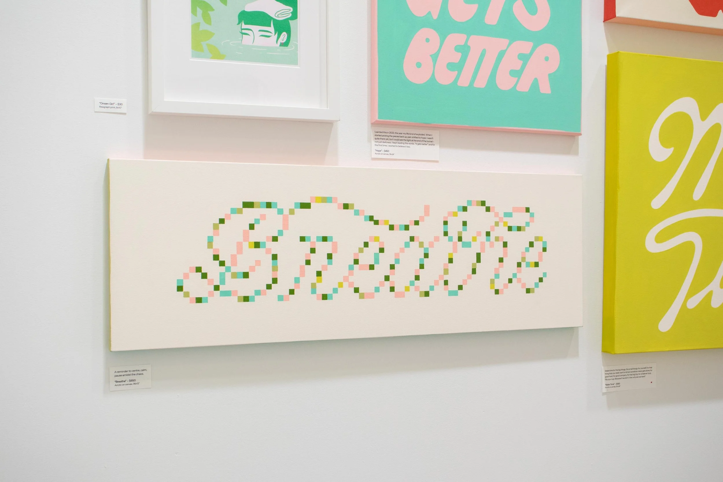 Currently available original art from “The Things We Tell Ourselves” – a collection of stories, musings, affirmations and insecurities reflected in beautifully painted letters.